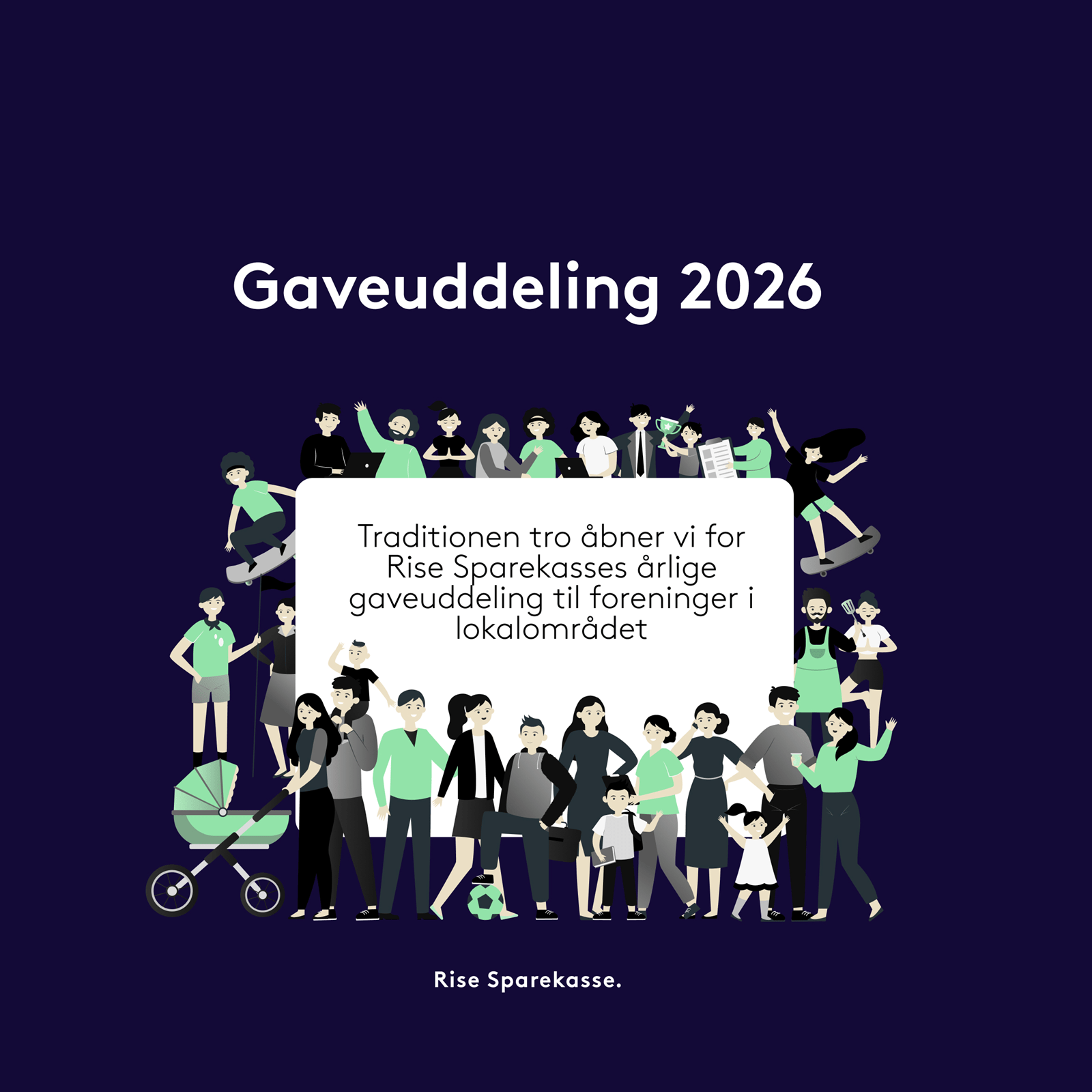 I Rise Sparekasse har vi i mange år støttet lokaleforeninger og ildsjæle, der får ting til at gro – uanset om det er i hallen, forsamlingshuset, på boldbanen eller et helt fjerde sted. Vi støtter projekter, der skaber liv, glæde og fællesskab i vores lokalområde.Har du et projekt, der trænger til et lille skub?