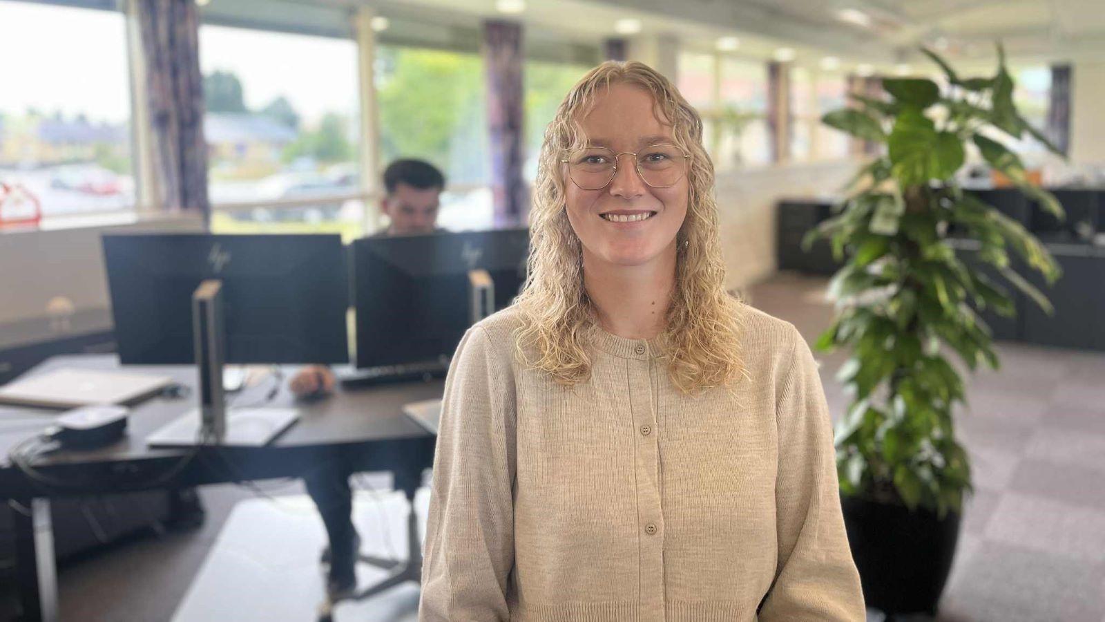 Sofie siger selv: "Jeg ser frem til at få indblik i arbejdslivet, lære en masse nyt – både fagligt og personligt – og få værdifuld erfaring med på vejen. Samtidig håber jeg at kunne bidrage med viden fra min tekniske baggrund."