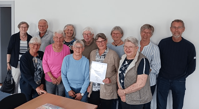 Demenscafeen takker efter at have fået midler til en tur til Humlemagasinet med kaffe & kage og på Årup hotel til spisning. "Her er et billede af dem der var i caféen i dag Tirsdag. Vi vil gerne sige tak, for donation. Vi skal på udflugt til Humlemagasinet og spise på Årup Hotel. Vi er glade for at få penge, så vi kan komme ud og opleve noget sammen." Hilsen Demenscafeen, Haarby